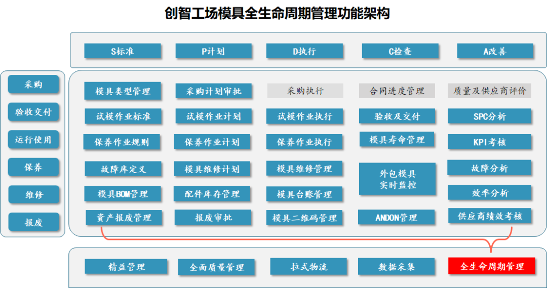 针对问题和需求,联动支付模具全生命周期管理系统给予了落地解决方案: